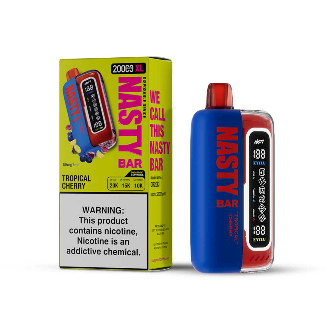 Découvrez la Nasty XL Turbo 20K en saveur Tropical Cherry, un mélange exotique qui allie la douceur des fruits tropicaux à l’intensité des cerises juteuses. Avec 50 mg de nicotine pour un hit puissant et un tirage MTL (Mouth-to-Lung), ce dispositif jetable est conçu pour offrir une satisfaction immédiate. Personnalisez votre vapotage avec ses trois modes – Éco, Normal, et Boost – pour une expérience sur mesure. Rechargez rapidement grâce à son port USB-C et profitez d’un design premium pour un vapotage alliant performance et élégance.